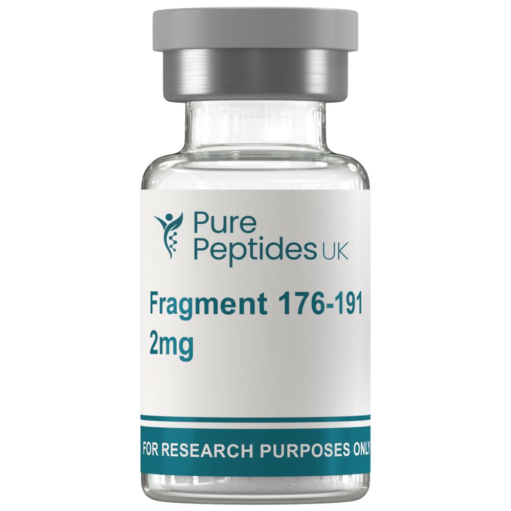 Fragment 176-191 is a synthetic peptide fragment derived from the C-terminal end of human growth hormone (hGH). This fragment encompasses amino acids 176 through 191, and is provided as a lyophilised powder for research use only. It is used in laboratory studies exploring fat metabolism, lipolysis vs lipogenesis balance, and metabolic regulation. The molecule is of interest because it isolates one region of hGH thought to influence fat breakdown without the broader effects of full GH systems.